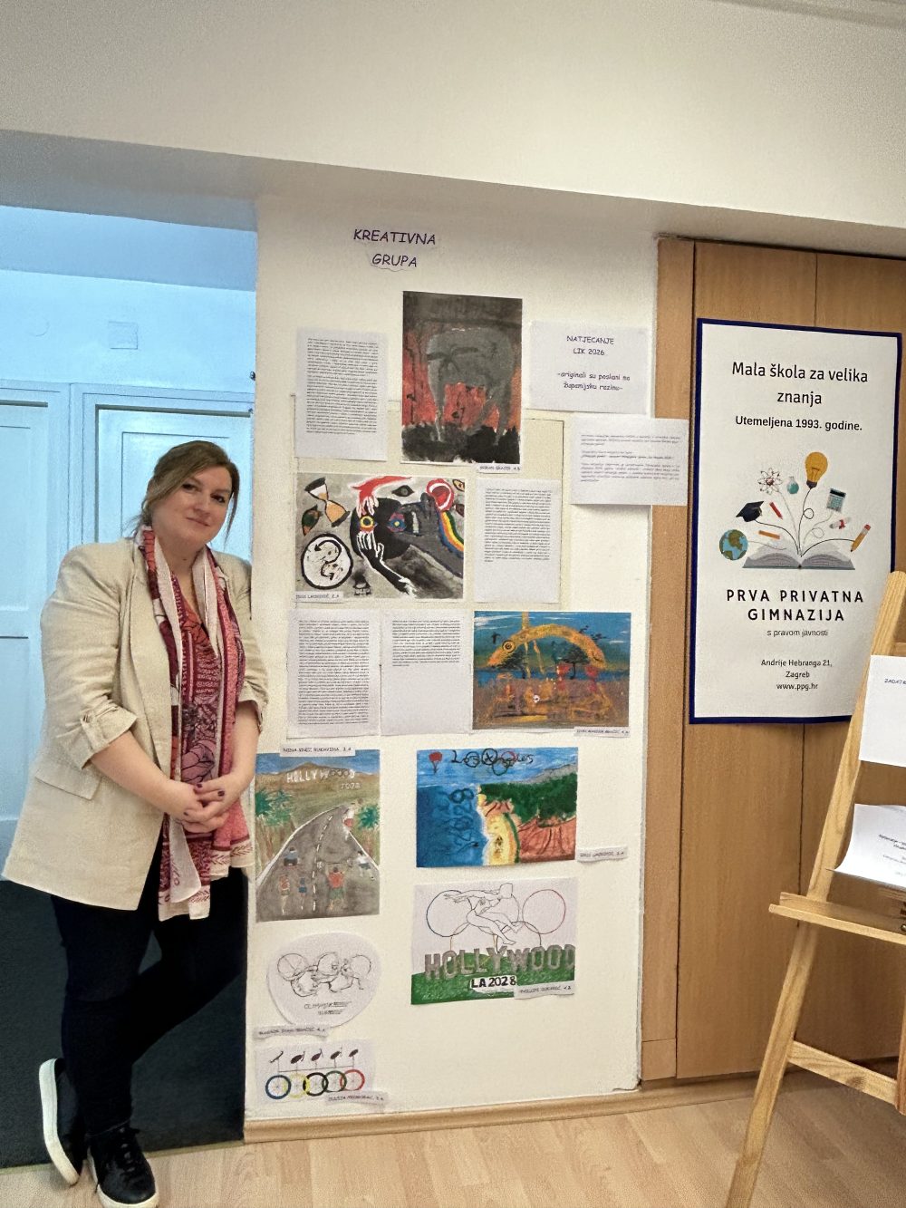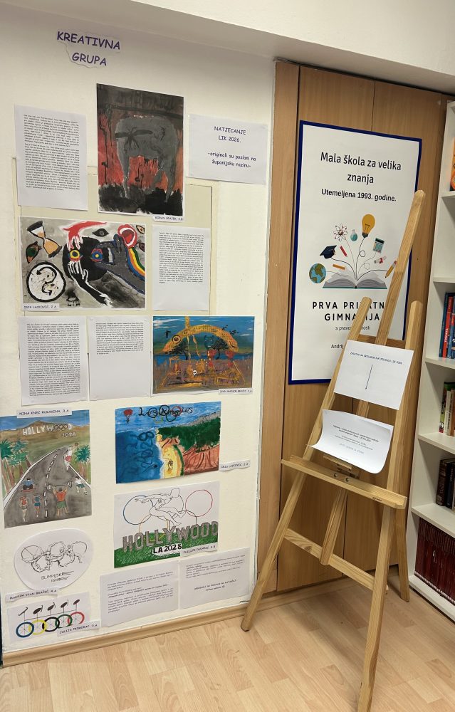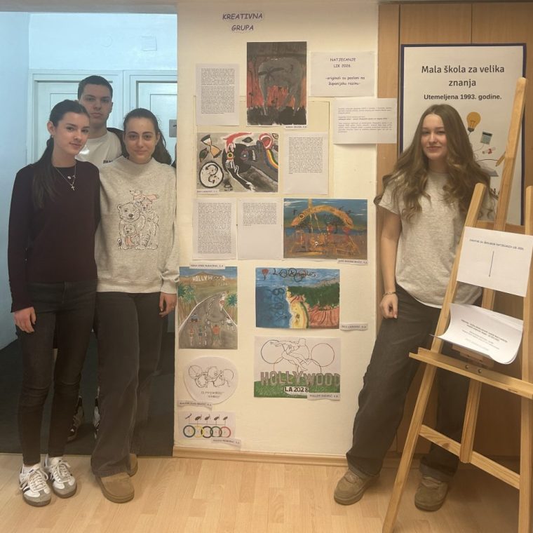 Drugi dio izložbe čine plakati inspirirani likovnim natječajem „Olimpijski plakat – ususret Olimpijskim igrama Los Angeles 2028.“, nastali u slobodnoj tehnici. Čestitamo autorima – Iris Lacković iz 2.a, Juliji Primorac i Nini Knez Rukavini iz 3.a, Ivanu Maksimu Bračiću iz 4.a i Phillipu Dukariću iz 4.b razreda. Držimo palčeve učenicima čiji su plakati prijavljeni na natječaj.
