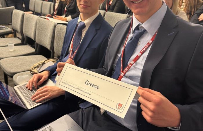 Šest PPG delegata na ovogodišnjoj 72. HMUN konferenciji zastupa Grčku i debatira unutar odabranih odbora: Nikola (2.a) i Timur (3.a) zastupaju Odbor za razoružanje i međunarodnu sigurnost s dvije teme: transnacionalne bande te strane intervencije u građanskim ratovima. Toni (3.a) i Juraj (3.b) debatiraju o izbjegličkoj krizi te nasilju u Mijanmaru u sklopu Odbora za socijalna, humanitarna i kulturna pitanja, dok Luka Paul (4.b) i Eva (4.a) zastupaju Posebni odbor za politiku i dekolonijalizaciju te debatiraju o pomorskim piratima i klimatskim migracijama.